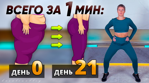МОЩНОЕ Упражнение на ЯГОДИЦЫ и ИКРОНОЖНЫЕ Мышцы 🔥🌰 ХУДЕЮ за 1 МИНУТУ‼️ Челлендж на 21 День