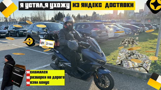 МОЯ ПОСЛЕДНЯЯ СМЕНА В ЯНДЕКС ДОСТАВКЕ! СКУТЕР СЛОМАЛСЯ, АВТОХАМ ПОДРЕЗАЛ НО БОНУС 1600 РУБ СПАС ДЕНЬ