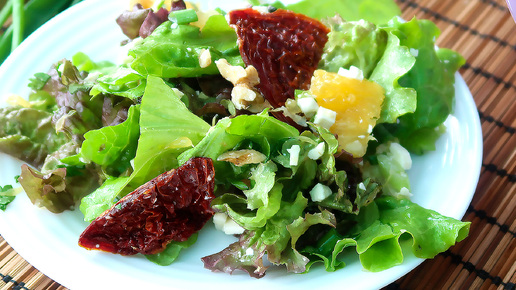 Салат с вялеными помидорами и апельсином. Необычный и очень вкусный.