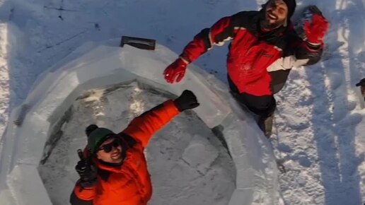Достроили купол в ледяной бане!