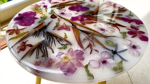 Создаю стильный стол из белой эпоксидной смолы с сухоцветами