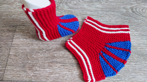 Пинетки на скорую руку 😊 спицами 😊без шва на ПОДОШВЕ