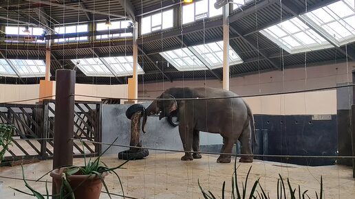 Слон играет в зоопарке Ростова-на-Дону