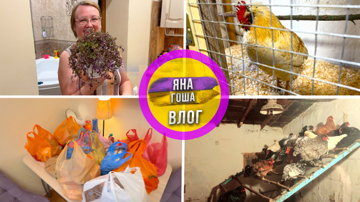Жизнь в деревне! Куры и петух! Уход за цветами. Традесканция. Закупка продуктов. Пробуем местный медовик. Эклеры - на помойку!