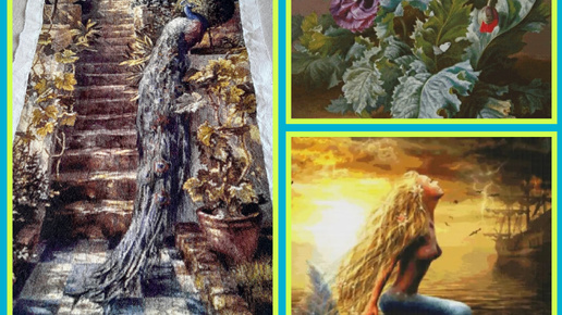 Закончила предпоследний ряд на Павлине/Вышивка 3 многоцветок за неделю