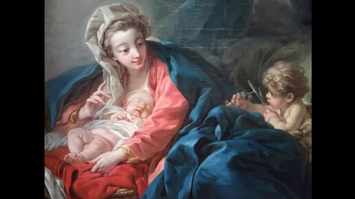"Рождество" картина Франсуа Буше из Пушкинского музея. Гламурная Мадонна в шелках в стиле рококо больше напоминает куртизанку в будуаре.