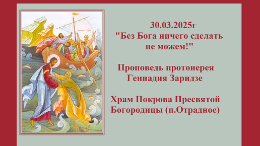 30.03.2025г "Без Бога ничего сделать не можем!" Проповедь протоиерея Геннадия Заридзе. Храм Покрова Пресвятой Богородицы (п.Отрадное)
