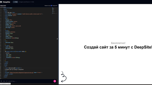 Обзор DeepSite: создание сайта или игры за 5 минут. Бесплатно!