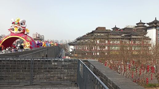 Лучшие локации Сианя. Вид с городской стены на новый Сиань. Самые интересные места Сианя как на ладони. Дома в древнекитайском стиле.