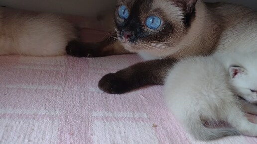 Кошка Варя и ее богатство, у всех открылись глазки и ушки, котятам 16 дней