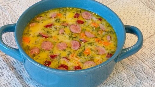 Сырный суп с копчеными колбасками /Вкусный супчик на скорую руку /