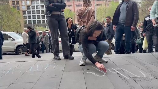 Группа вынужденных переселенцев из Карабаха проводит акцию у здания Минсоцтруда Армении