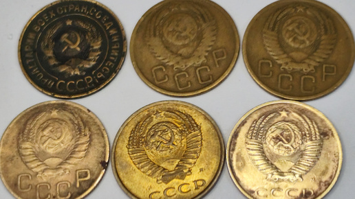 Как выглядела монета 3 копейки при Сталине, Хрущёве,Брежневе и Горбачёве.
