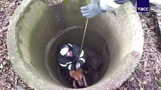 В Подмосковье спасатели вытащили собаку из пятиметрового колодца