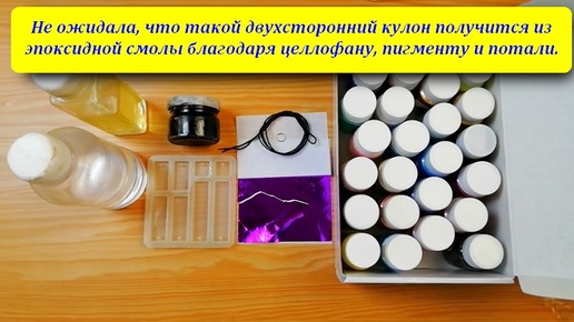 Не ожидала, что такой двухсторонний кулон получится из эпоксидной смолы благодаря целлофану, пигменту и потали.