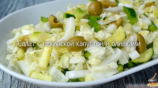 Простое и быстрое блюдо из овощей с лёгкой заправкой. Салат с пекинской капустой и оливками