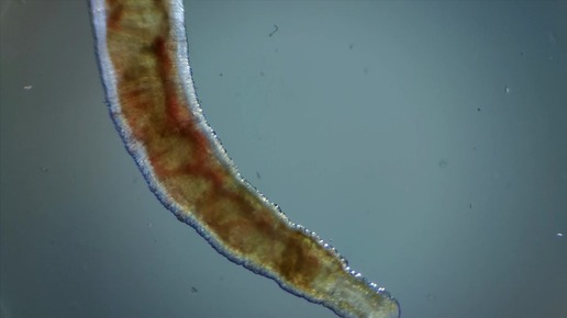 Червь, название его не знаю. Но встречается часто. Увеличение 40х.Освещение нижнее наклонное, поляризация, кольцевое.