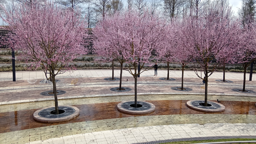 Весенний парк "Краснодар". Фонтаны. Цветущие сливы. Смотровая площадка.
