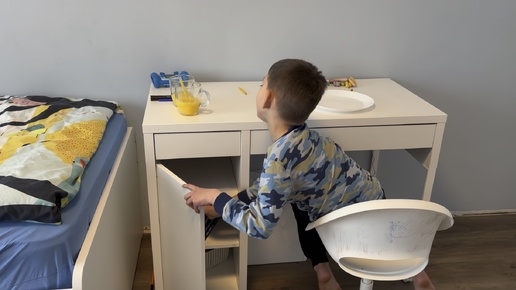 Продолжаю рубрику уборок. Тим наводит порядок на столе. Мальчик аутист