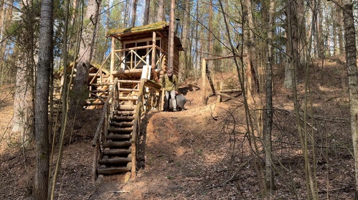 Устанавливаю подвесные качели на территории хутора | жизнь в лесу с диким кабаном.