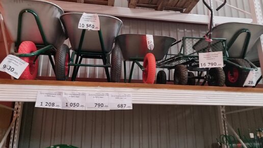 Садовые тачки, шпалеры, подставки для цветов и прочее в нашем деревенском хозяйственном магазине. Обзор ассортимента и цен в начале сезона.