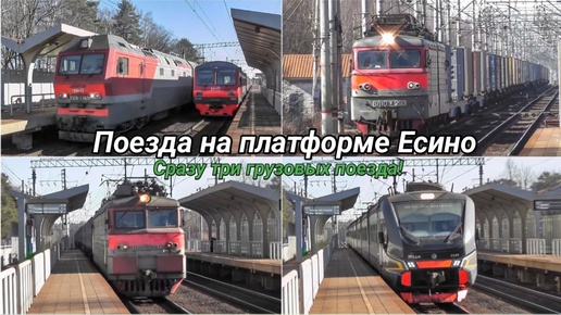 Поезда на платформе Есино. Сразу три грузовых поезда под тремя разными локомотивами!