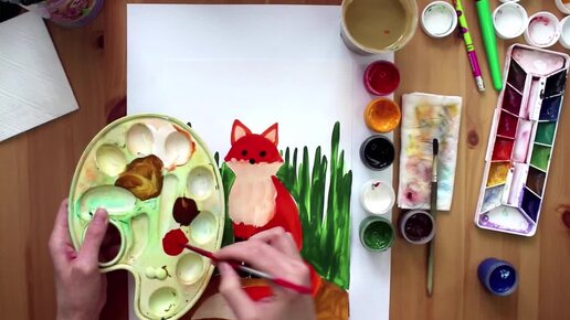 Лиса: рисуем акварелью. Реалистичная лиса с пушистым хвостом. Детализация шерсти и позы.