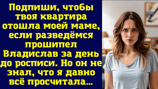 Подпиши, чтобы твоя квартира отошла моей маме, если разведёмся — прошипел Владислав за день до росписи