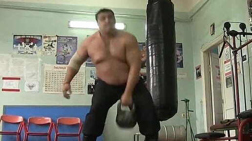 Дмитрий Халаджи, жонглирование гирей 47 кг. Архивное видео