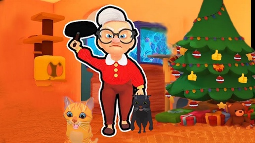 Кот и бабка #2. Наказала котов злая бабка . Игра Cat and Granny на TV Мяу