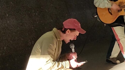 Москва. Переход на Арбате. Прохожий парень спел с уличными музыкантами.
