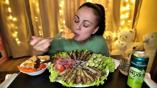 Мукбанг🐟Жареная мойва, копчёная корюшка, овощи по корейски 🥗🍅🥒