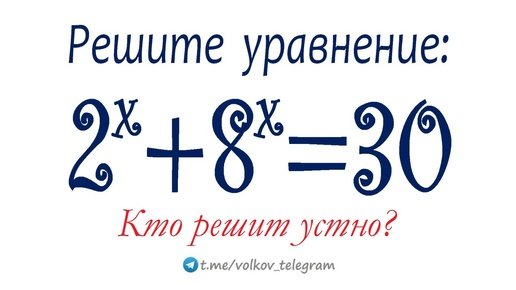 Кто решит устно? ➜ Решите уравнение ➜ 2ˣ+8ˣ=30