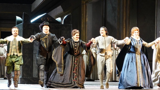 Поклон зрителям после оперы "Дон Карлос" в Большом театре