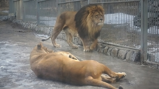 Найти пытается у льва Ричарда добиться внимания, но мимо прошел кипер и Ричард сбежал.