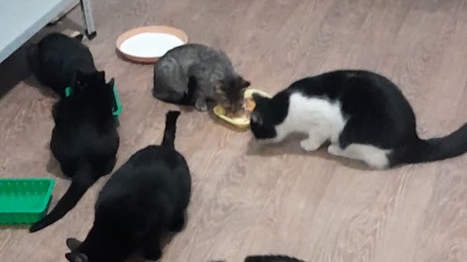Малая часть наших монастырских котиков. И всем подавай отдельные миски.
