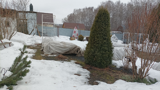 Как выглядит мой сад и укрытия с розами 1 апреля 2025 г. И снова мыши...