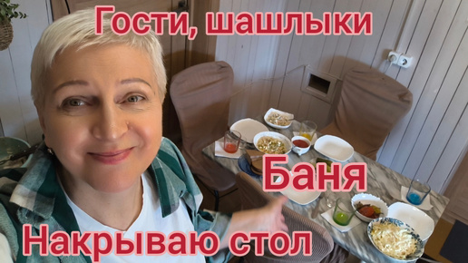 Гости, шашлыки, баня. Муж собрал стол новый. Готовлю.