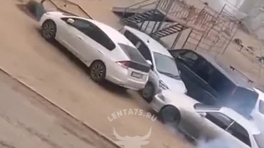 Водитель в Чите буксовал на парковке и врезался в автомобиль