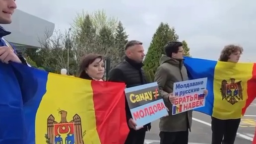 "Молдаване с Россией!": Протестующие против высылки российских дипломатов из Молдовы собрались возле кишинёвского аэропорта