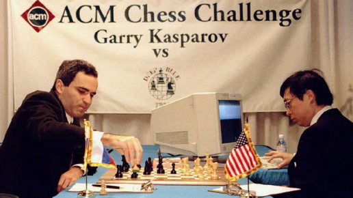 Deep Blue талантливо жертвует и красиво выигрывает белыми у Гарри Каспарова партию 1996 года. Сицилианская защита, защита бармена, 1-0