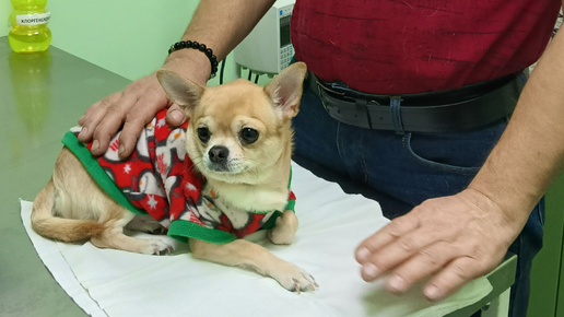 Чихуахуа Бонапарт🐶в ветклинике на ежегодной вакцинации💉).