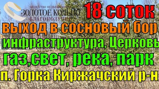 Участок 18 соток у Церкви, сосновый бор, газ и свет в п.Горка Киржачского р-на. Вся инфраструктура.