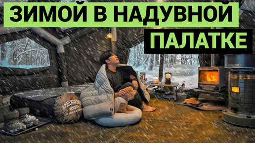 Зимой в надувной палатке | Снежный кемпинг с дровяной печкой