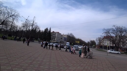 Нальчик Кабардино-Балкария. Сквер "Ореховая роща" Малыши возлагают цветы к монументу "Нальчик город воинской славы"