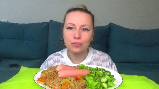 Мукбан. Ухожу лия с ДЗЕНа ?мое мнение о всей этой ситуации)) Гречневая лапша с овощами, сосисончики с горчицкой, салат.