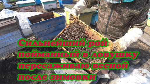 ОГРОМНЫЙ РОЙ МЕСТНОЙ ПОРОДЫ ПЕРЕСАЖИВАЮ ИЗ ЛОВУШКИ В УЛЕЙ ПОСЛЕ ЗИМОВКИ В ПОДПОЛЕ