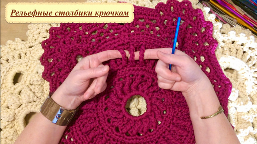 Объемные рельефные столбики крючком на примере готовых работ.