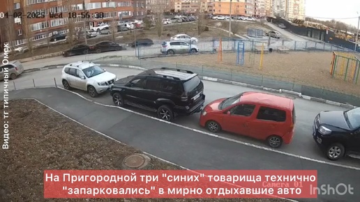 Синеботы влетели в припаркованные машины в омском дворе, а после ретировались с места аварии.