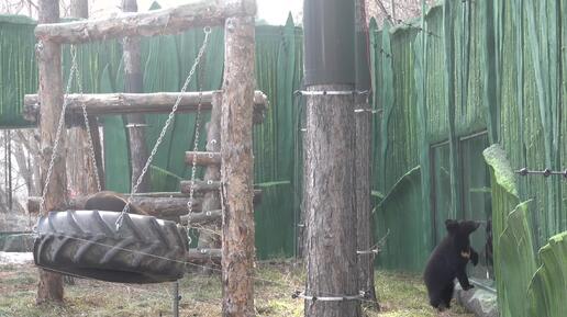 Дуся качается на качели, а Фима общается с посетителями. 31.03.2025